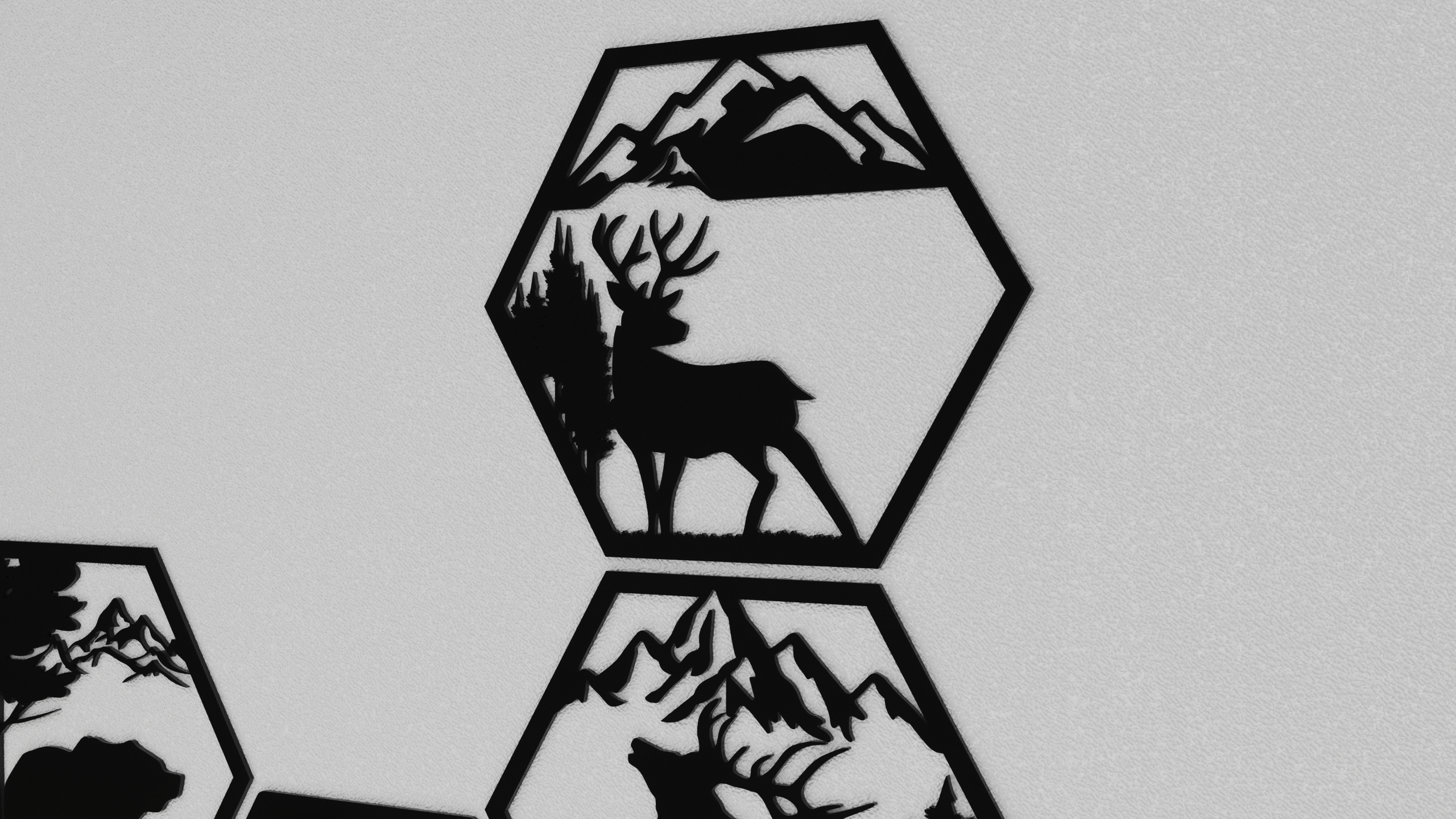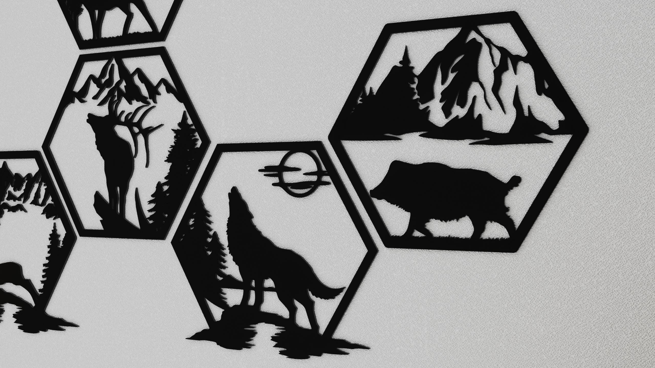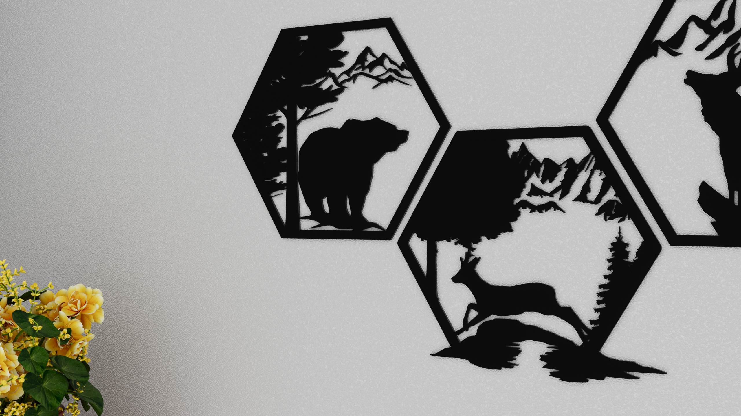 Decorațiune de perete: Modele hexagonale 3D „Wild Life”