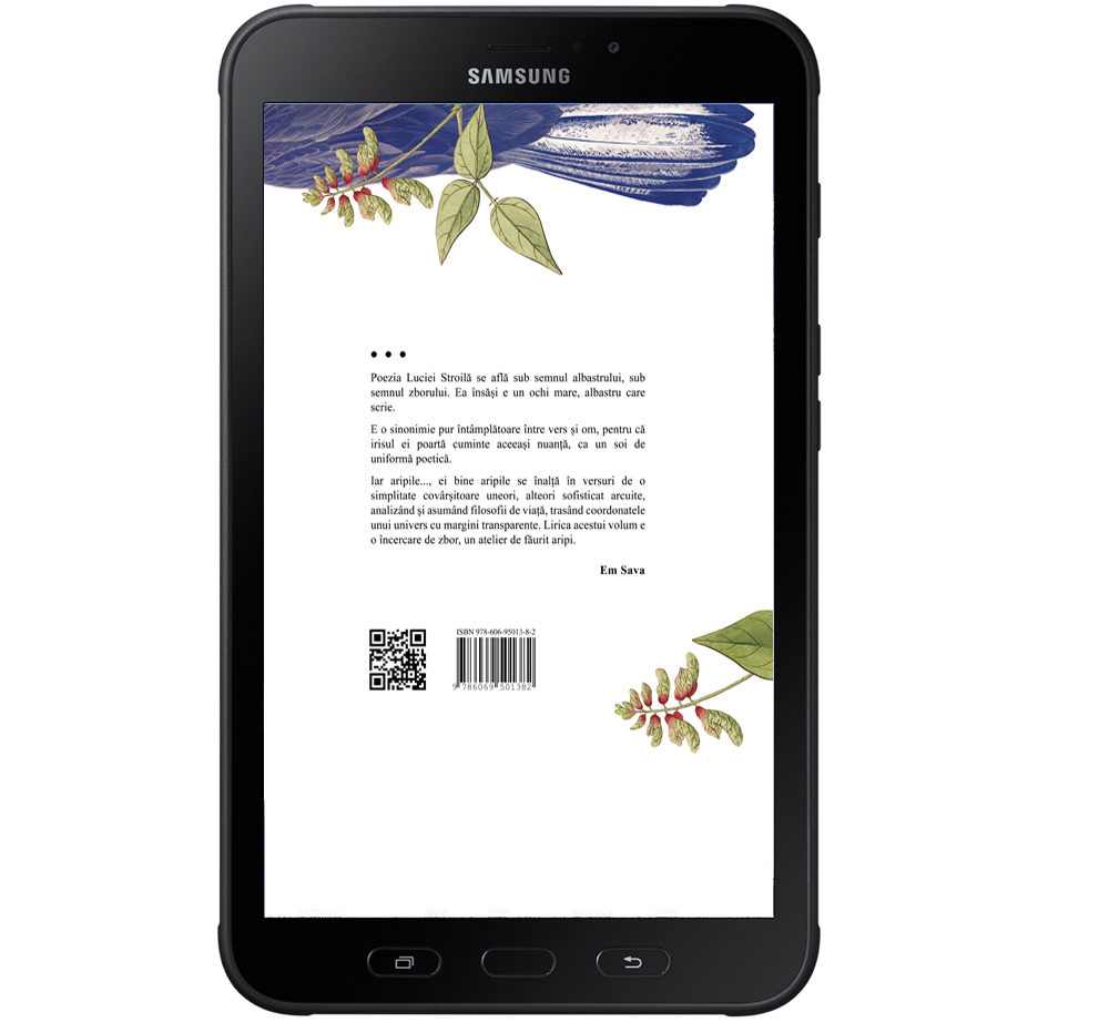 „Mi-am strâns aripile și-am tras aer în piept în cea mai neagră noapte de iunie. Am fost prima verigă defectă în marea de albastru ce mă înconjura. Ochii albaștri ai mamei, ai bunicii, ai bunicului, unchilor, mătușilor, verișorilor, tot atîtea nuanțe de albastru între care ochii mei verzi erau puiul de lebădă defect. Am căutat seninul, inconștient, toată viața. Am fost pînă la Voroneț după cea mai perfectă nuanță de albastru. Nu era niciunde ceea ce căutam, doar când ridicam ochii spre cer întâlneam, uneori, ochii neamului și mi se oprea respirația. Târziu am descoperit că sufletul meu are ochi albaștri ca cerul unei dimineți senine într-un loc uitat de lume, ascuns în spatele lui Dumnezeu. Atunci am înțeles că, într-un fel sau altul, toată viața mi-a fost plină de nuanțe de albastru. Și cuvintele-au început să cânte.” (Lucia Stroilă)