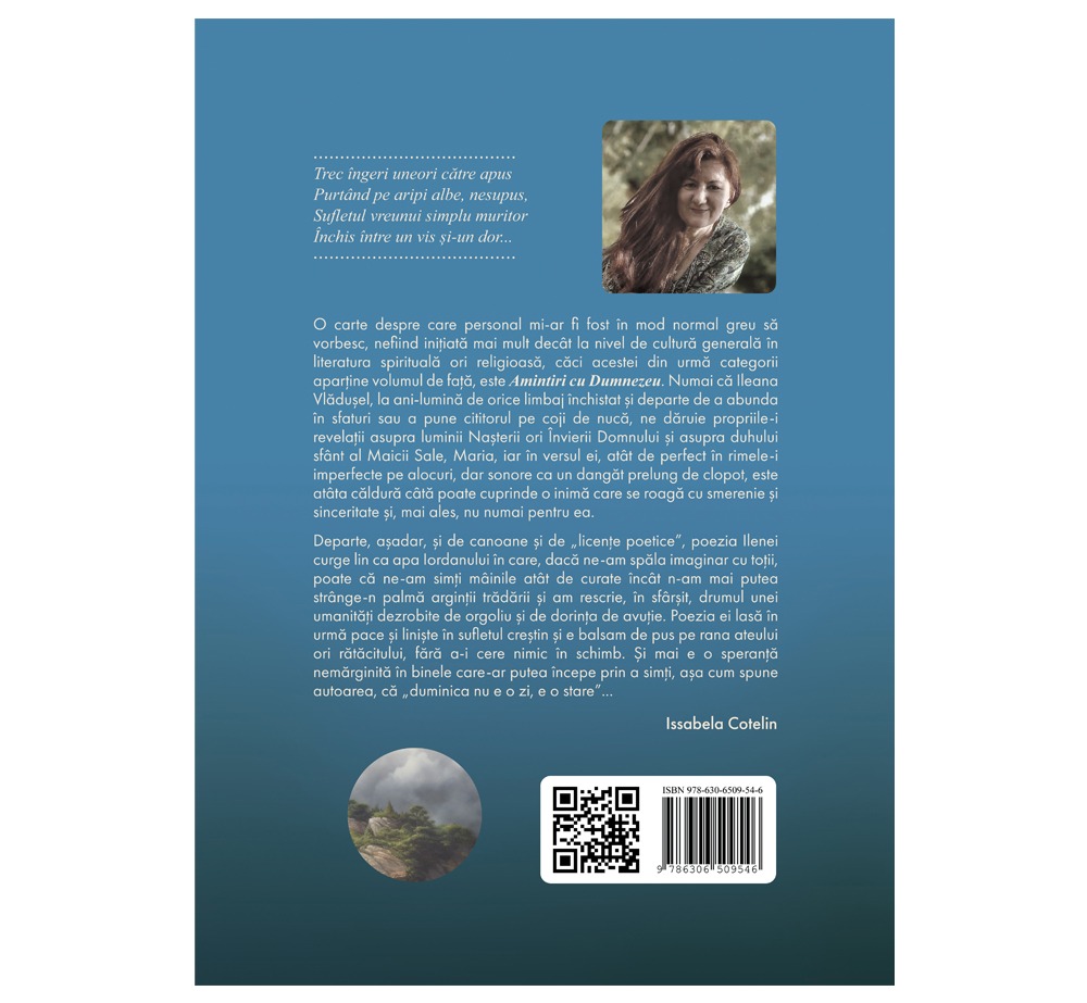 O carte despre care personal mi-ar fi fost în mod normal greu să vorbesc, nefiind inițiată mai mult decât la nivel de cultură generală în literatura spirituală ori religioasă, căci acestei din urmă categorii aparține volumul de față, este „Amintiri cu Dumnezeu”. Numai că Ileana Vlădușel, la ani-lumină de orice limbaj închistat și departe de a abunda în sfaturi sau a pune cititorul pe coji de nucă, ne dăruie propriile-i revelații asupra luminii Nașterii ori Învierii Domnului și asupra duhului sfânt al Maicii Sale, Maria, iar în versul ei, atât de perfect în rimele-i imperfecte pe alocuri, dar sonore ca un dangăt prelung de clopot, este atâta căldură câtă poate cuprinde o inimă care se roagă cu smerenie și sinceritate și, mai ales, nu numai pentru ea.