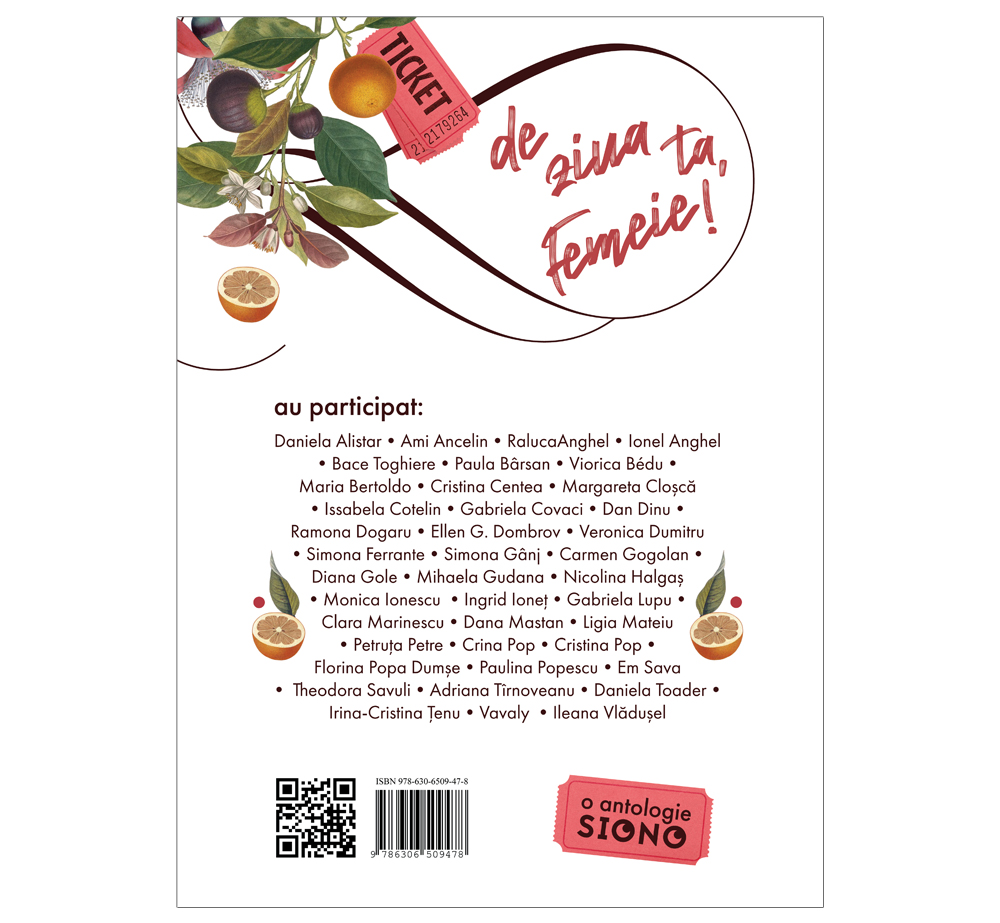 Destinată femeilor, având o alură jucăușă, de la text și până la copertă, Antologia SIONO 2024 -„De ziua ta, femeie!” e darul primăverii, al mărțișorului și al femeilor din viața noastră.