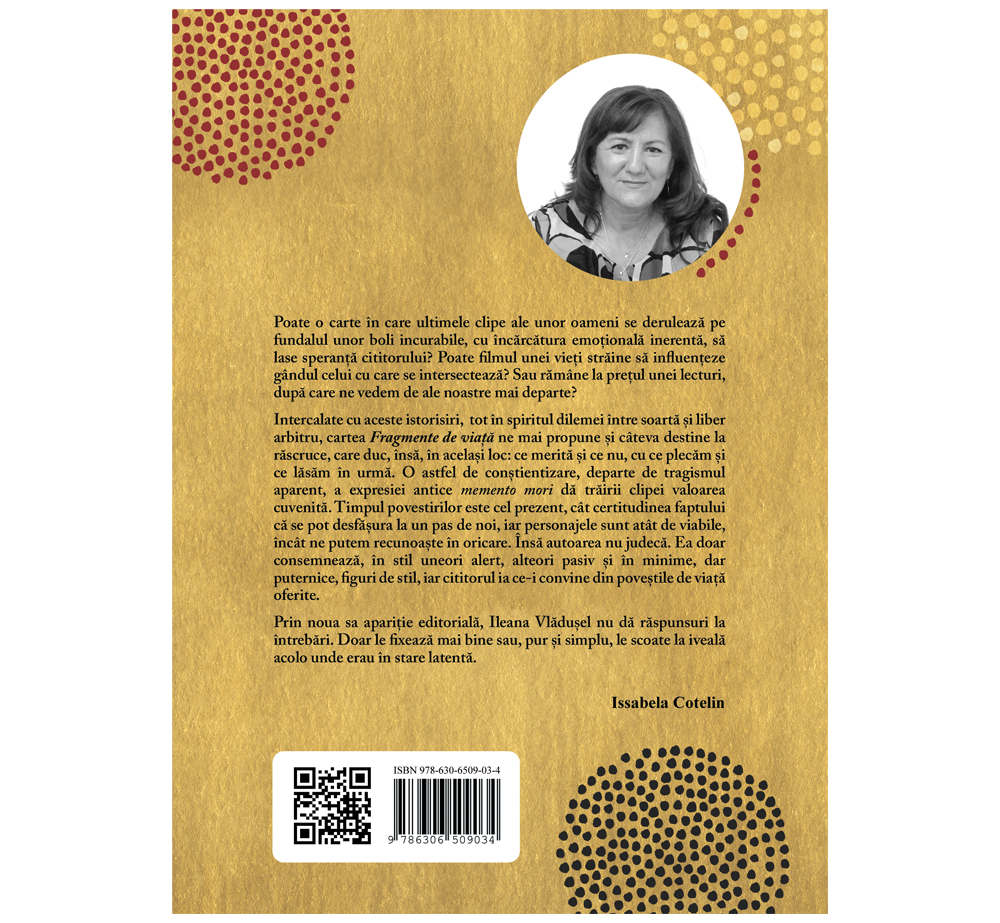 Intercalate cu aceste istorisiri la persoana întâi, dar în spiritul acelorași dileme despre soartă și liber arbitru, cartea „Fragmente de viață” ne mai propune și câteva destine la neutralitatea persoanei a treia, derulate în întregime sau prinse într-un anume moment al lor, de răscruce, care duc, însă, la concluzii identice: ce merită și ce nu, cu ce plecăm și ce lăsăm în urmă. O astfel de conștientizare, departe de tragismul aparent, a expresiei antice memento mori, ar putea da trăirii clipei, la o adică, valoarea cuvenită.