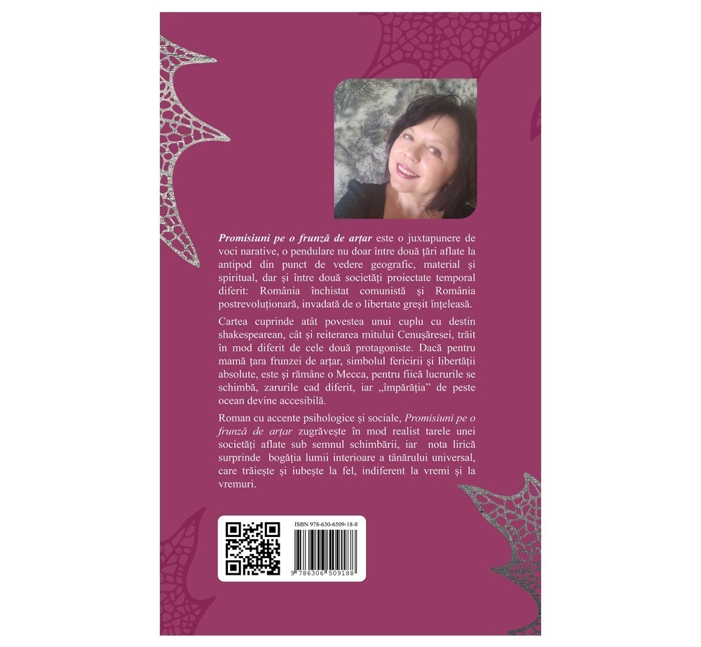Roman cu accente psihologice și sociale, Promisiuni pe o frunză de arțar, zugrăvește în mod realist tarele unei societăți aflate sub semnul schimbării, iar nota lirică surprinde bogăția lumii interioare a tânărului universal, care trăiește și iubește la fel, indiferent la vremi și la vremuri.