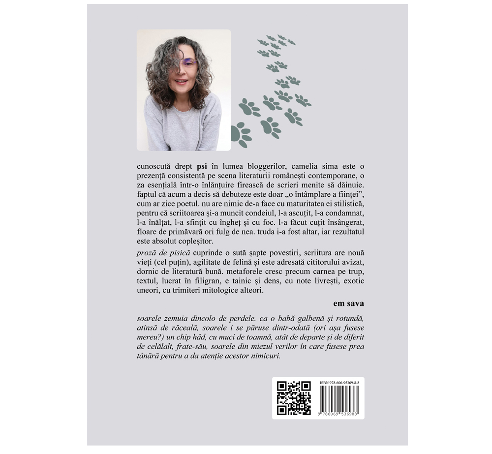 Cunoscută drept Psi în lumea bloggerilor, Camelia Sima este o prezență consistentă pe scena literaturii românești contemporane, o za esențială într-o înlănțuire firească de scrieri menite să dăinuie. Faptul că acum a decis să debuteze este doar „o întâmplare a ființei”, cum ar zice poetul. Nu are nimic de-a face cu maturitatea ei stilistică, pentru că scriitoarea și-a muncit condeiul, l-a ascuțit, l-a condamnat, l-a înălțat, l-a sfințit cu îngheț și cu foc. L-a făcut cuțit însângerat, floare de primăvară ori fulg de nea. Truda i-a fost altar, iar rezultatul este absolut copleșitor.